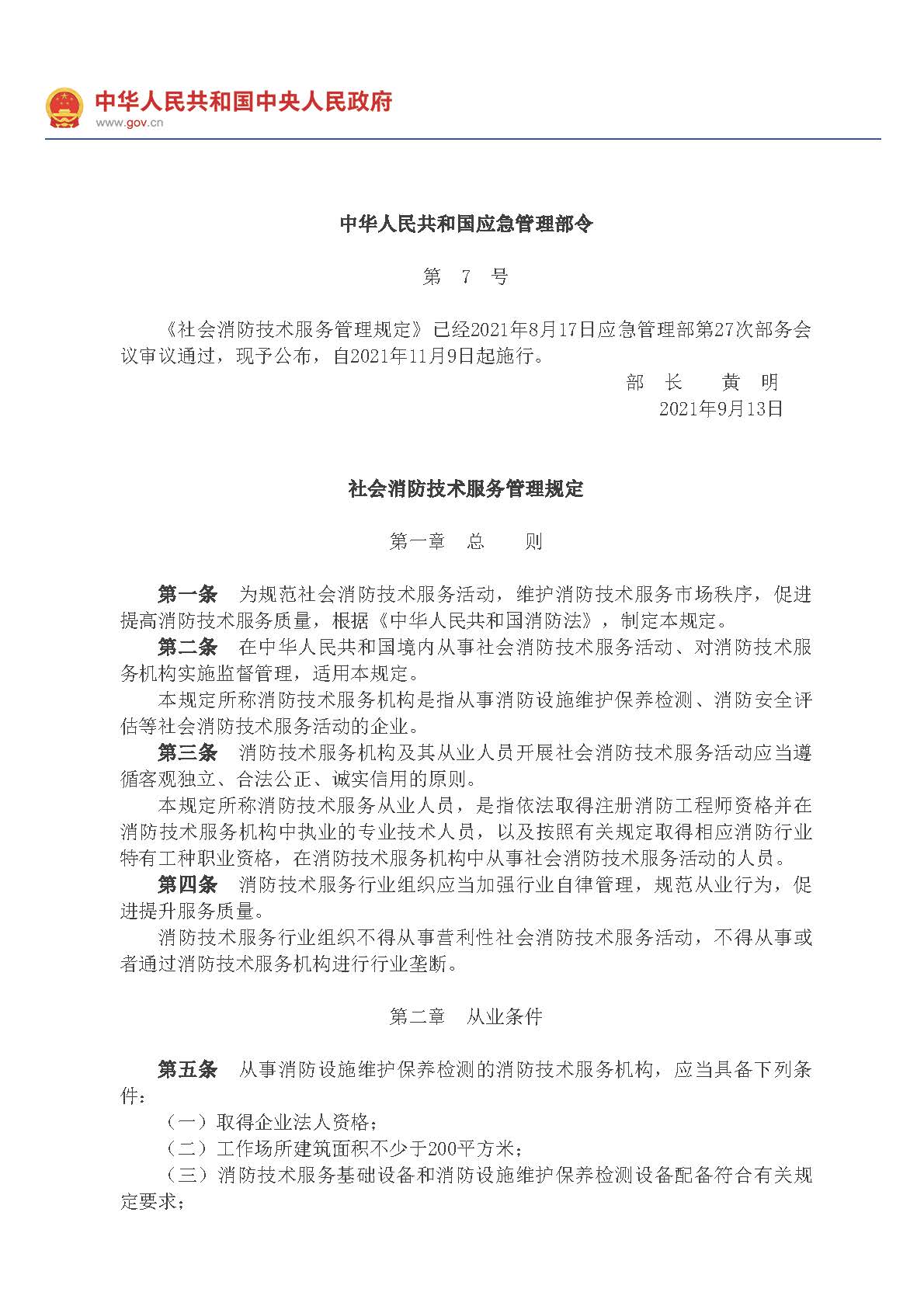 《社會消防技術服務管理規定》應急管理部令第7號