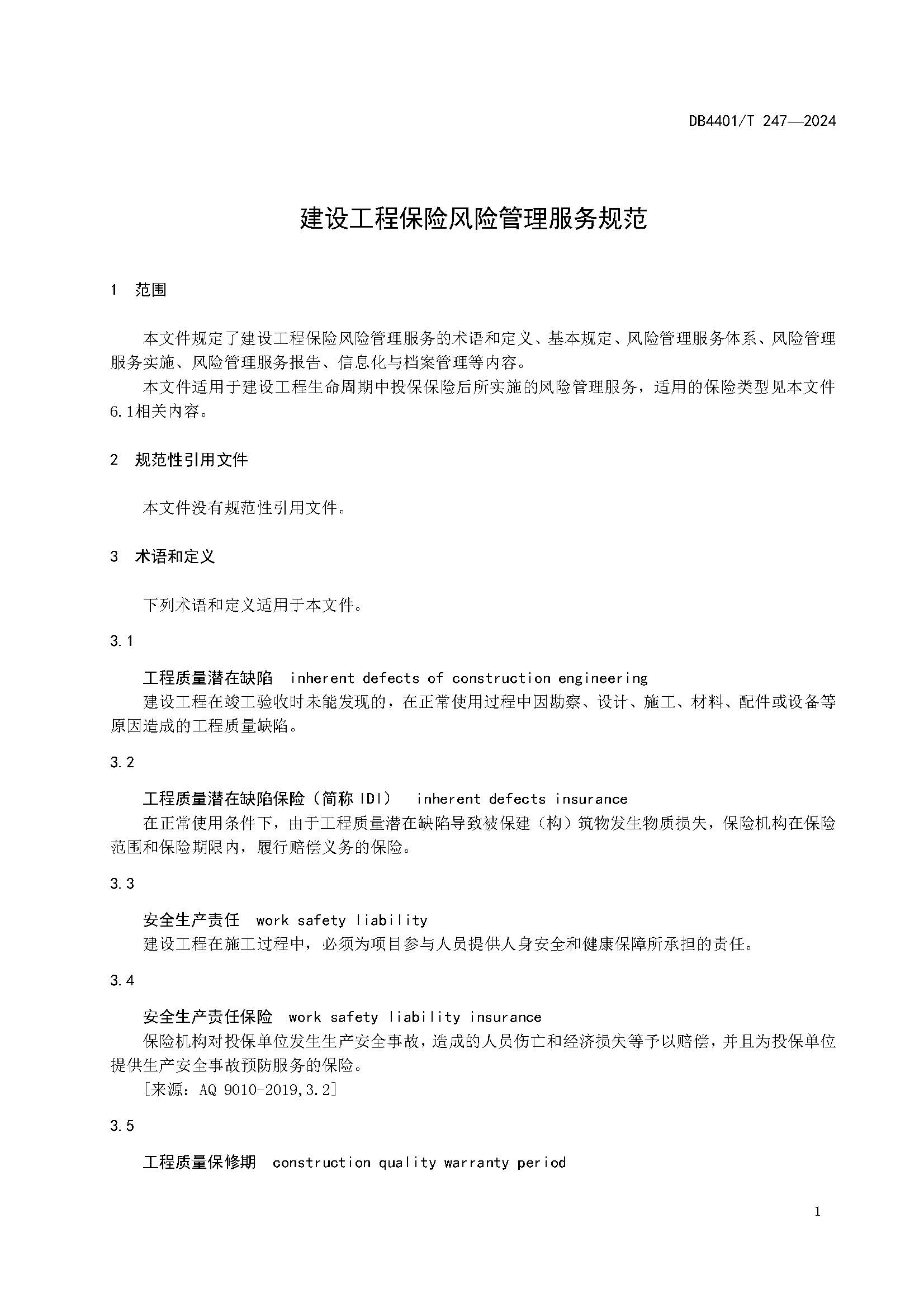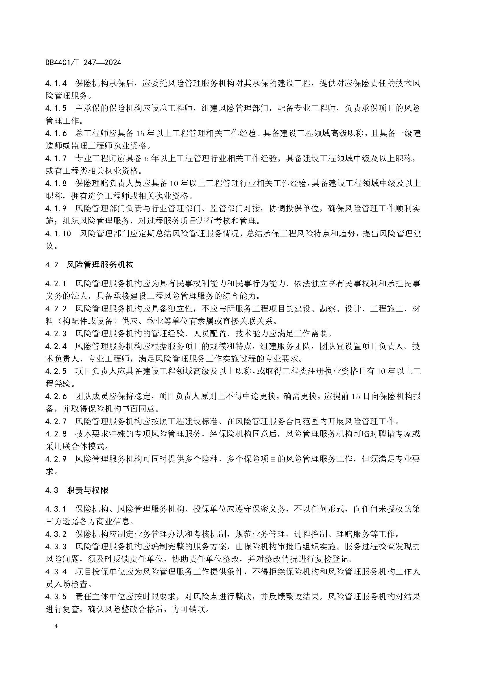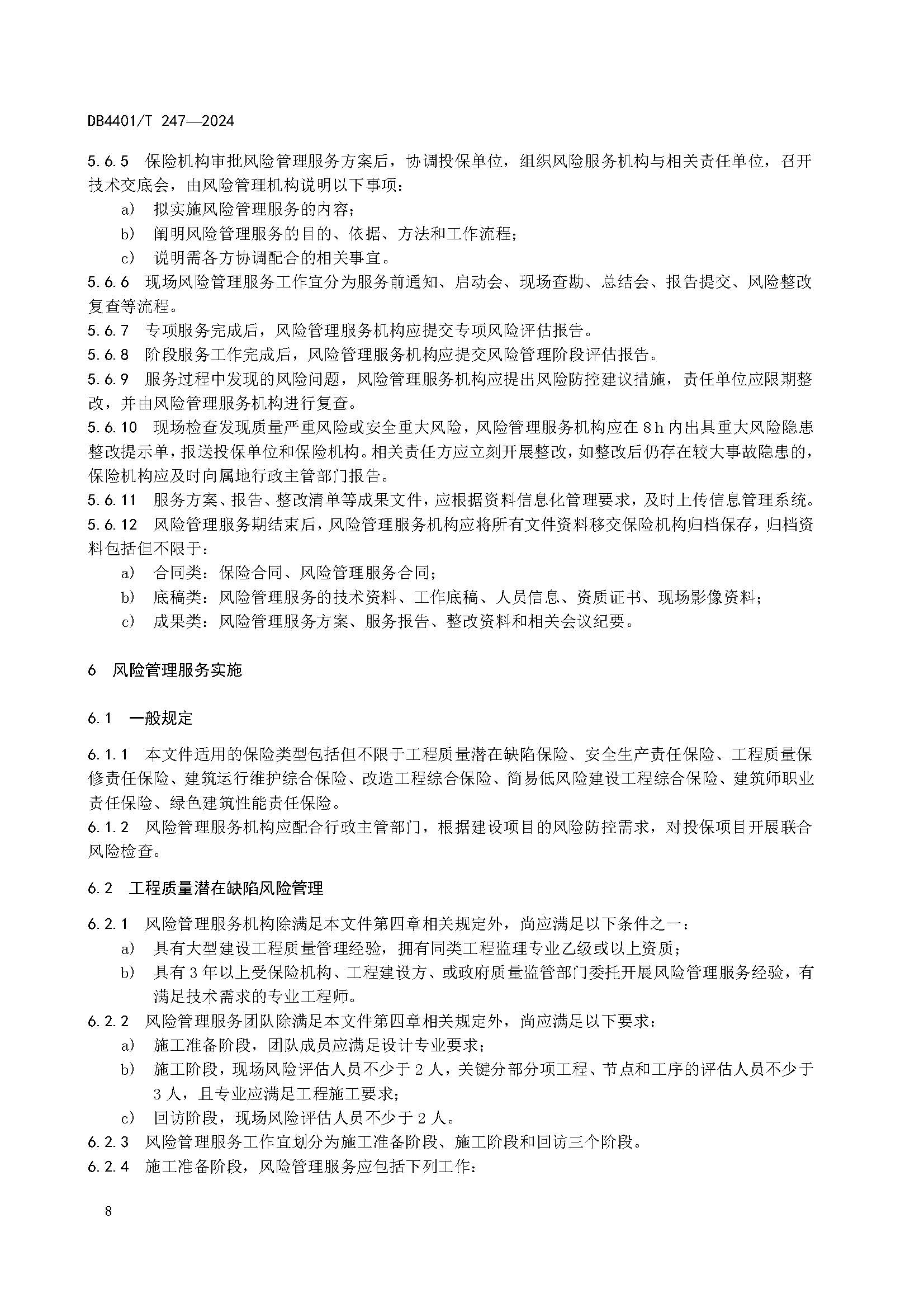 《建設工程保險風險管理服務規范》DB 4401T 247-2024